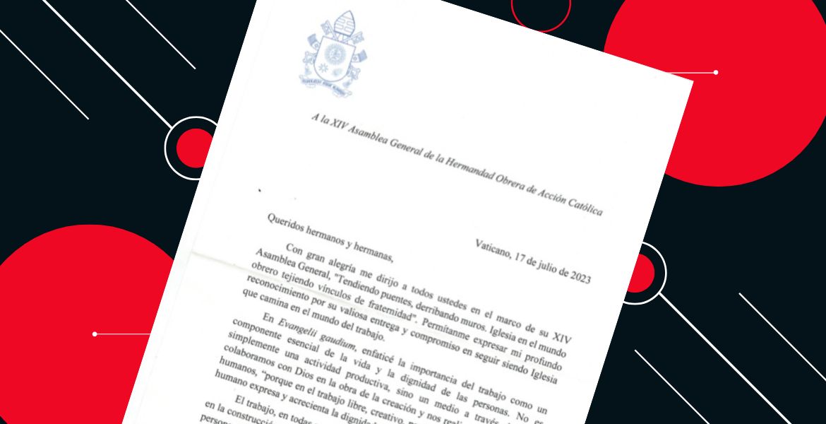 A la 14ª asamblea general de la HOAC, la Hermandad Obrera de Acción Católica, se ha sumado el papa Francisco con un mensaje específico para este acontecimiento. El pontífice ha enviado un mensaje en forma de carta firmado el pasado 17 de julio y comunicado a los más de 800 participantes reunidos en este evento en Segovia. La presidenta Maru Megina ha dado lectura a este documento inédito ya que es la primera vez que un Papa se dirige a una asamblea de la HOAC directamente. Francisco muestra su “alegría” y les muestra a los militantes su “profundo reconocimiento por su valiosa entrega y compromiso en seguir siendo Iglesia que camina en el mundo del trabajo”.