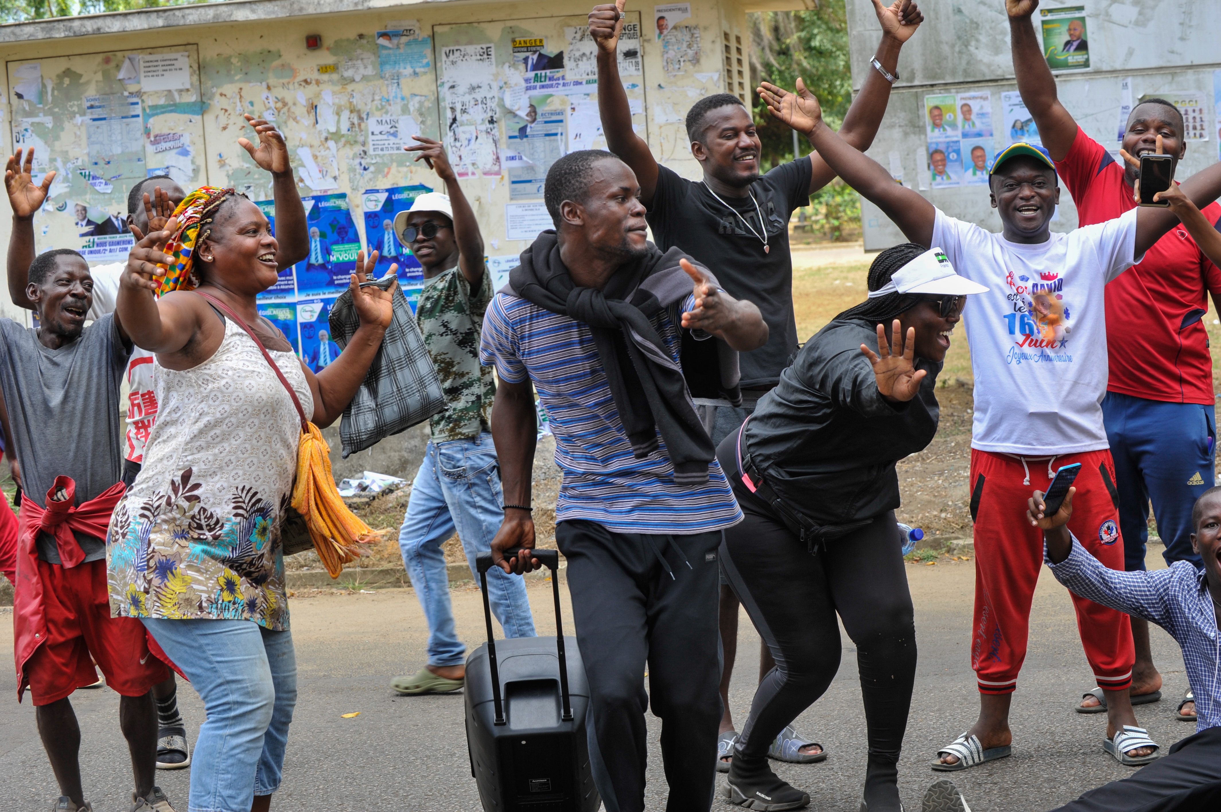 Akanda (Gabon), 30/08/2023.- People celebrate after a military coup, in the streets of Akanda, Gabon, 30 August 2023. Members of the Gabonese army on 30 August announced on national television that they were canceling the election results and putting an end to Gabonese President Ali Bongo's regime, who had been declared the winner. (Golpe de Estado) EFE/EPA/STR