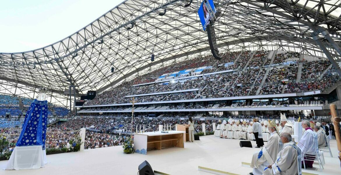 Ante un estadio repleto de fieles, entre los que se encontraba el presidente de la república, Emmanuel Macron, Francisco subrayó que “necesitamos recuperar la pasión y el entusiasmo, redescubrir el gusto del compromiso por la fraternidad, de seguir corriendo el riesgo del amor en las familias y hacia los más débiles, y de reencontrar en el Evangelio una gracia que transforma y embellece la vida”.