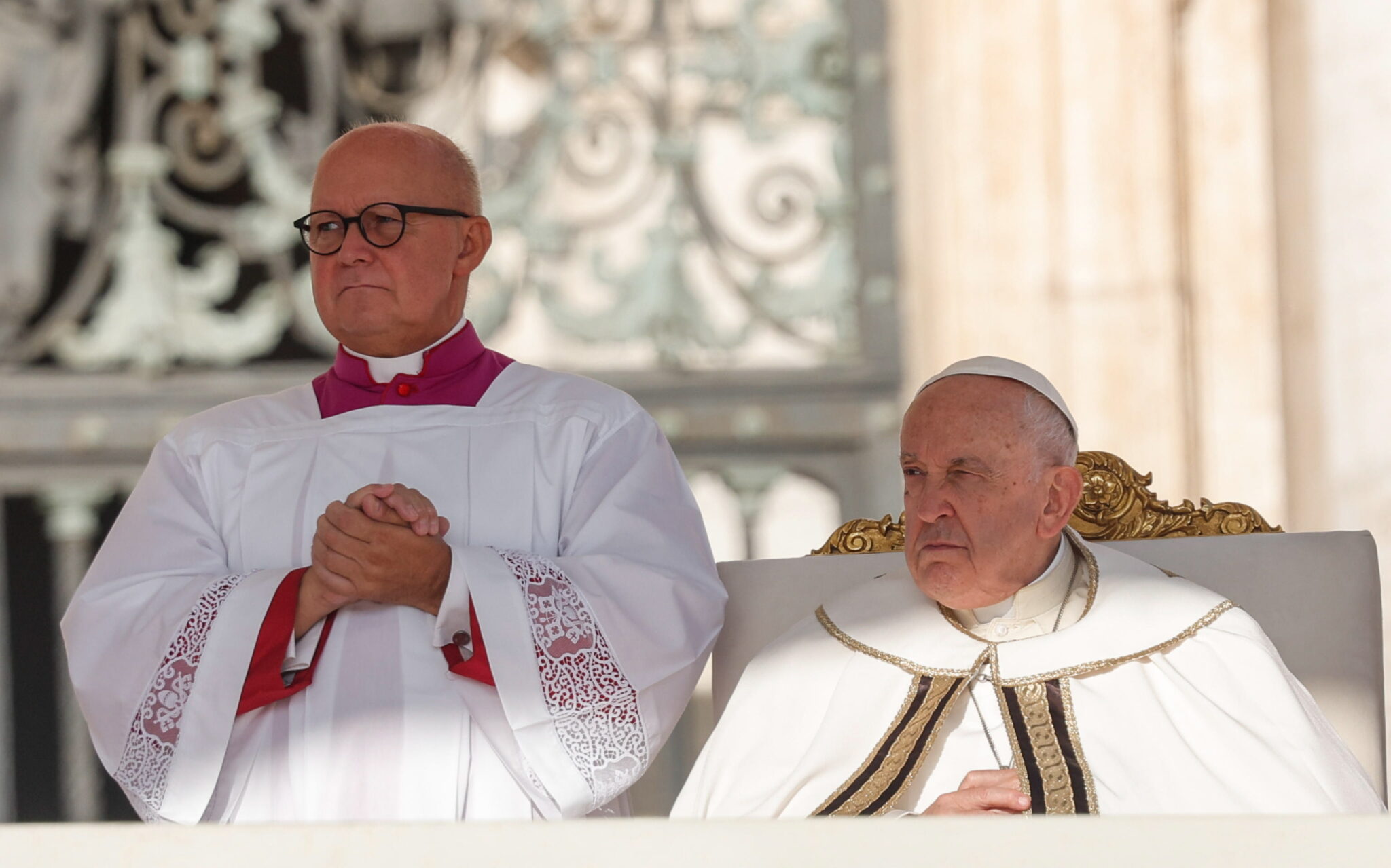 Vatican City (Vatican City State (holy See)), 04/10/2023.- Pope Francis leads a Holy Mass with the new Cardinals and opening of the XVI Ordinary General Assembly of the Synod of Bishops in Saint Peter's Square, Vatican City, 04 October 2023. (Papa, Obispo, Cardenal) EFE/EPA/GIUSEPPE LAMI
