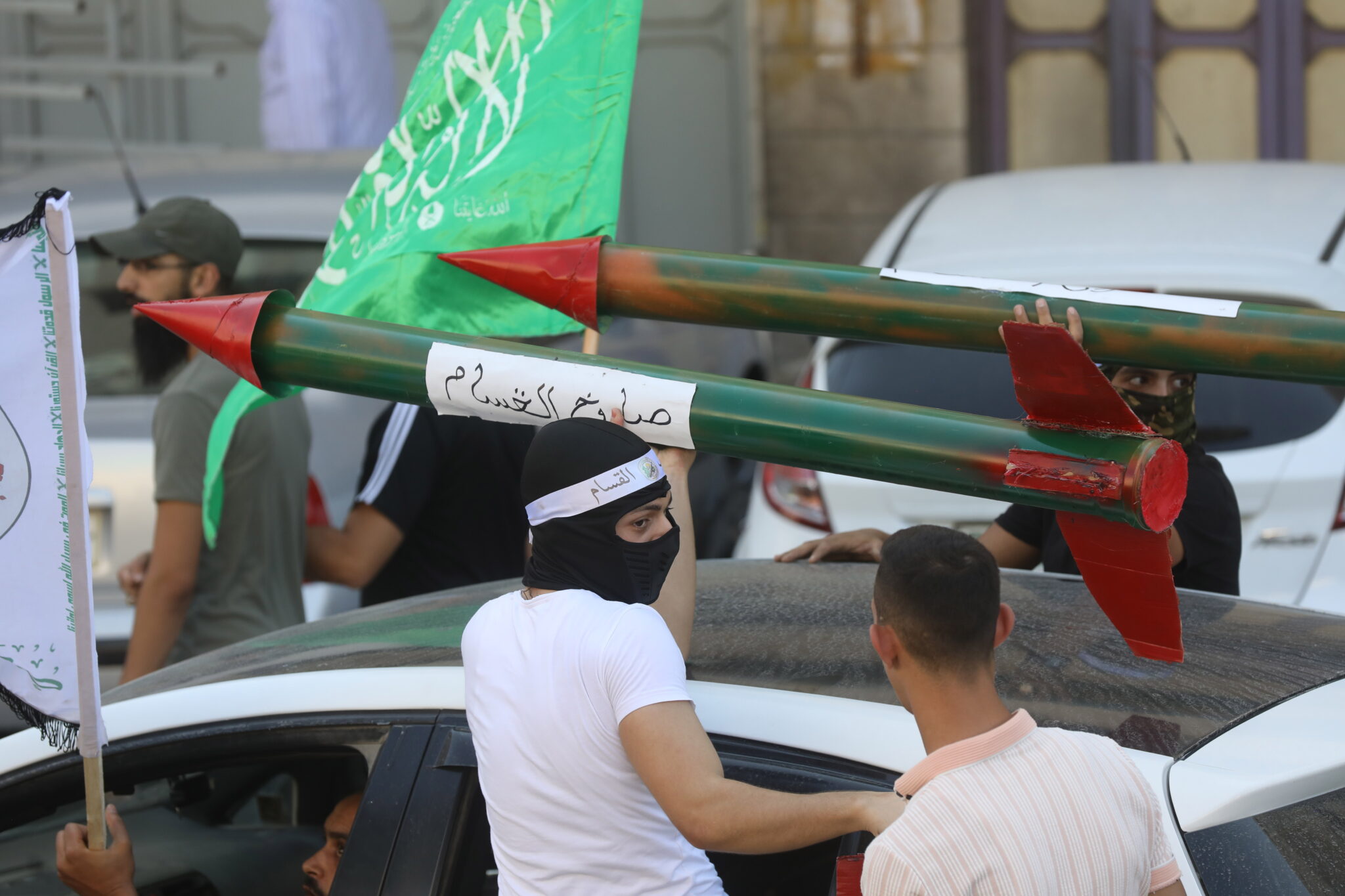Nablus (-), 13/10/2023.- Palestinians carry mock Qassam rockets during a protest in support of Gaza in the West Bank city of Nablus, 13 October 2023. According to the Palestinian Ministry of Health, 11 people were killed in the West Bank towns on 13 October. More than 1,700 Palestinians have been killed in the Gaza Strip and over 7,300 others injured, according to the Palestinian Ministry of Health, after Israel started bombing the Palestinian enclave in response to attacks carried out by the Islamist movement Hamas on Israel from the Gaza Strip on 07 October. (Protestas) EFE/EPA/ALAA BADARNEH