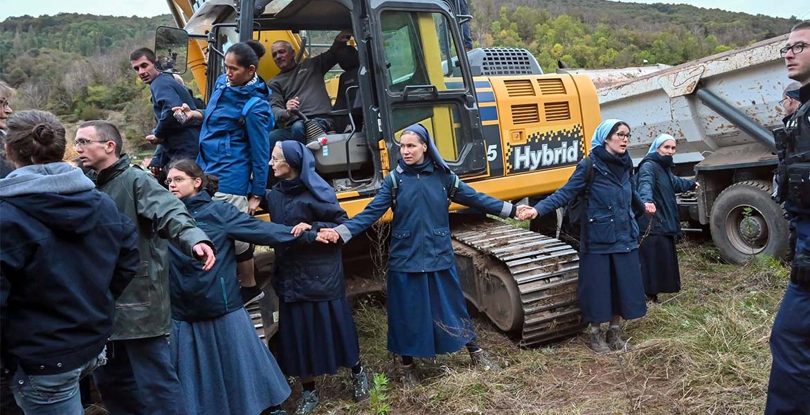 El pasado lunes, 16 de octubre, un grupo de activistas medioambientales del colectivo Por el futuro del valle de Bourges organizaron unas de sus protestas. A su encuentro salió la comunidad de monjas que para proteger la construcción formó una cadena humana en torno a una excavadora. La tensión fue creciendo hasta que unas monjas salieron con un trozo de un canalón en las manos llegando a derribar a uno de los ecologistas.