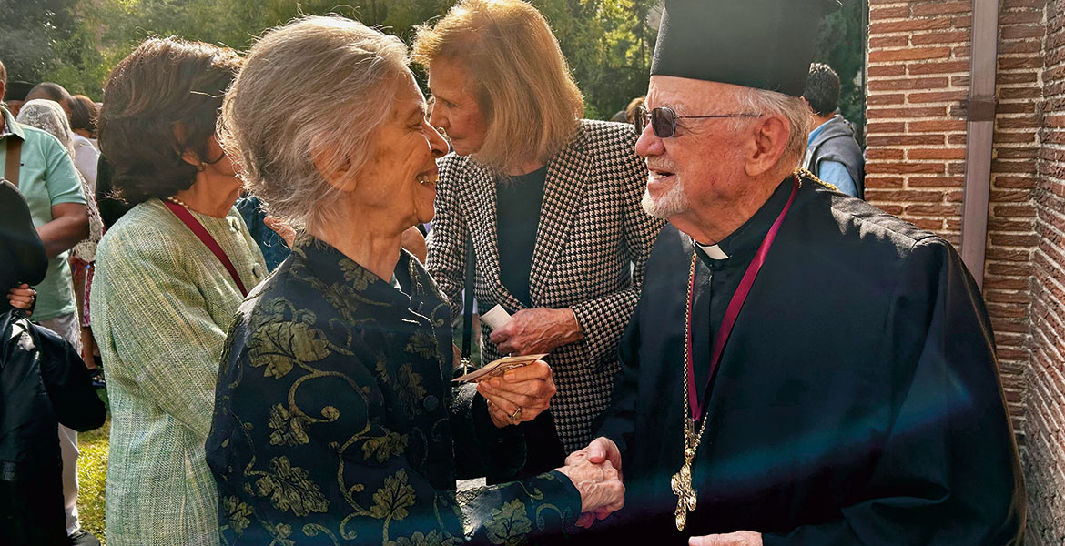 El obispo Bessarión Komzias ejerce de anfitrión de todos y cada uno. O de todas y cada una, porque, como entre los católicos, ellas son mayoría. La alegría puede con la tensión propia del momento y el metropolita de España y Portugal regala una sonrisa para cada uno de los que llegan. Unos se inclinan para que les bendiga imponiéndole su mano derecha sobre la cabeza. Otros le plantan tres besos que saben a cercanía. Es la hora. Bessarión echa un vistazo al móvil. Para chequear que todo está en orden.