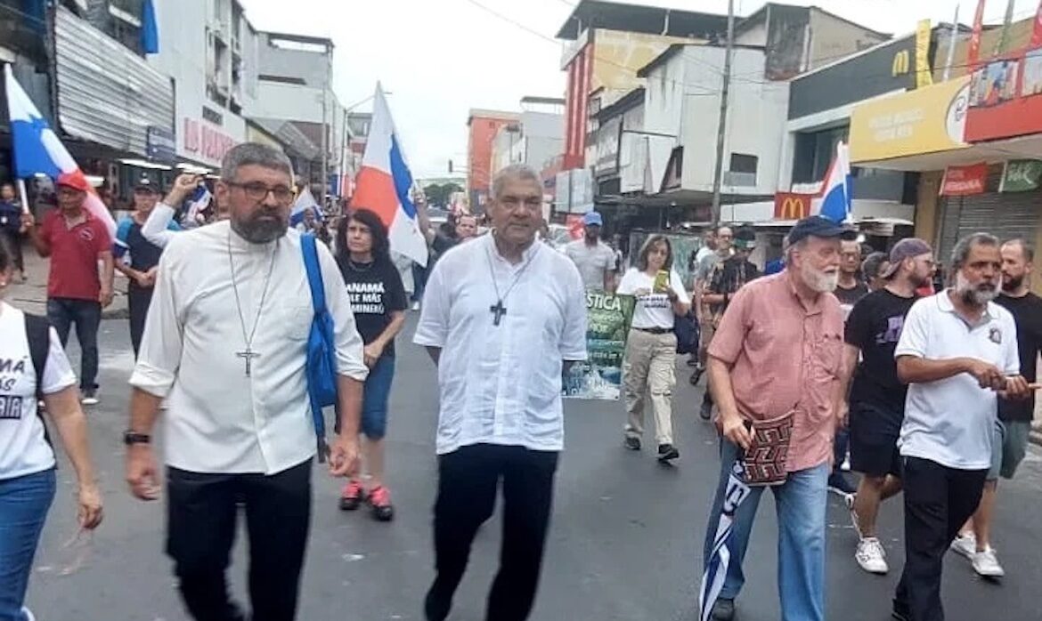 El presidente de la Conferencia Episcopal Panameña y obispo de Chitré, Rafael Valdivieso, y el secretario general y obispo de Colón- Kuna Yala, Manuel Ochogavía, marcharon en apoyo a organizaciones civiles, académicas y ambientalistas, que protestaron contra la minería.