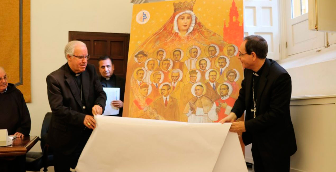 Al inicio del acto se ha desvelado el cartel de las beatificaciones, obra de Juan Palomo Reina. El autor ha explicado que se trata de “un retrato colectivo del grupo de los veinte mártires. Aunque son de distinta procedencia, estado y condición social, están representados formando una comunidad que vive bajo la protección del manto de la Virgen María en su advocación de Virgen de los Reyes, patrona de Sevilla. El cartel quiere expresar el triunfo sobre el mal y la muerte porque los mártires son testigos de que la muerte ha sido vencida y que esta vida es la preparación para la vida eterna en el cielo, como queda manifestado en el lema ‘Ofrecí mi vida al Señor y Él la ha aceptado’”.
