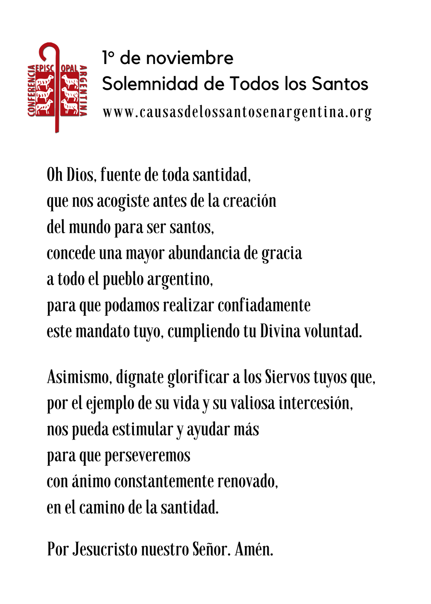 Este 1° de noviembre la Iglesia celebra la Solemnidad de Todos los Santos en recuerdo de quienes nos precedieron y centraron su vida en la presencia y el mensaje de Dios. Desde Argentina, se sumarán con la 27º Jornada de Oración por la Santificación del Pueblo de Dios y Glorificación de sus Siervos.
