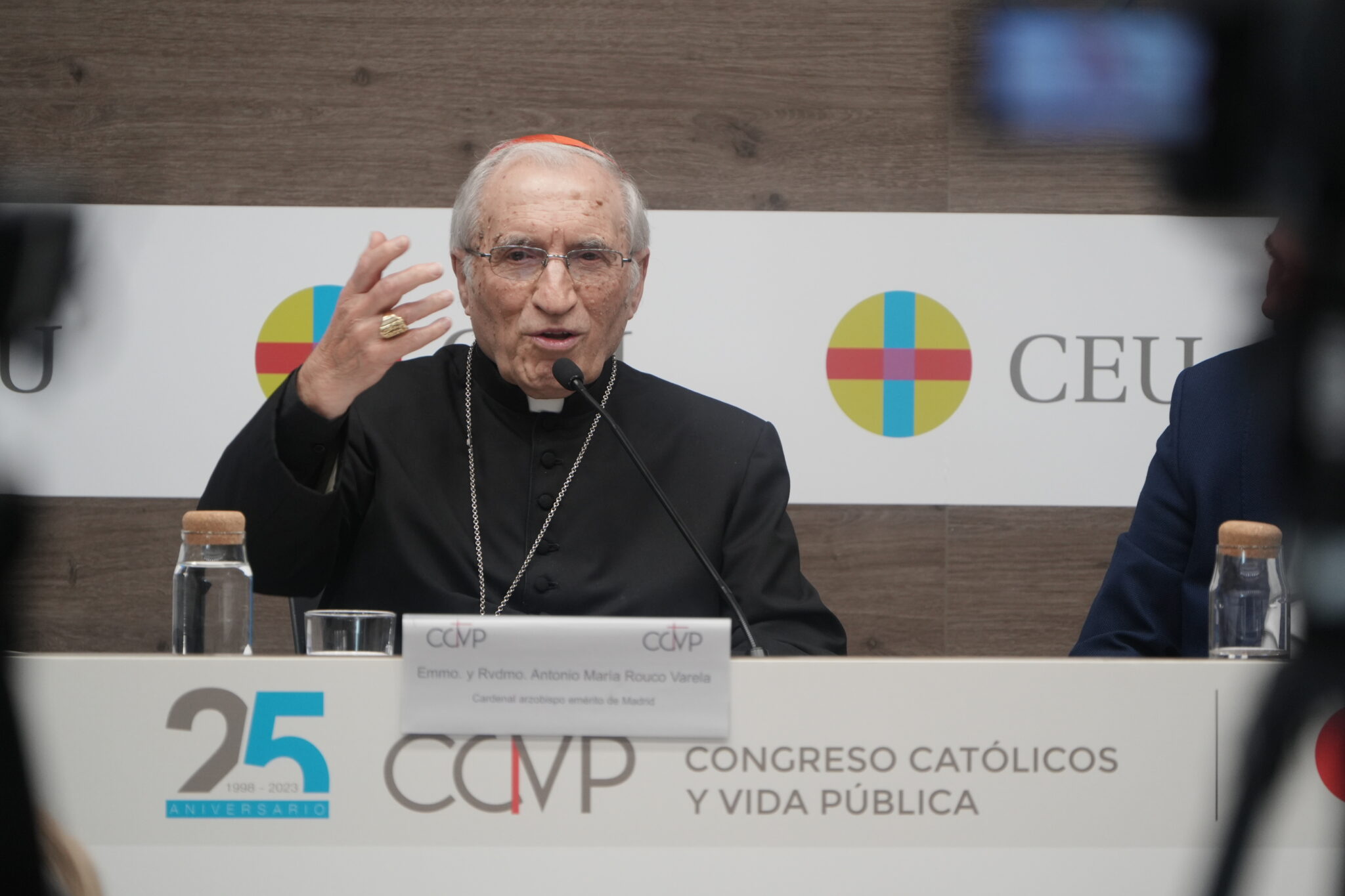 El cardenal compartió estas inquietudes en un encuentro informal con periodistas que tuvo lugar en la Universidad San Pablo CEU de Madrid, tras la presentación del 25 Congreso Católicos y Vida Pública. Rouco Varela ha pronunciado la ponencia que sirve de antesala de este foro de encuentro y reflexión que tendrá lugar entre el 17 y 19 de noviembre, organizado por la Asociación Católica de Propagandistas y la Fundación San Pablo CEU.