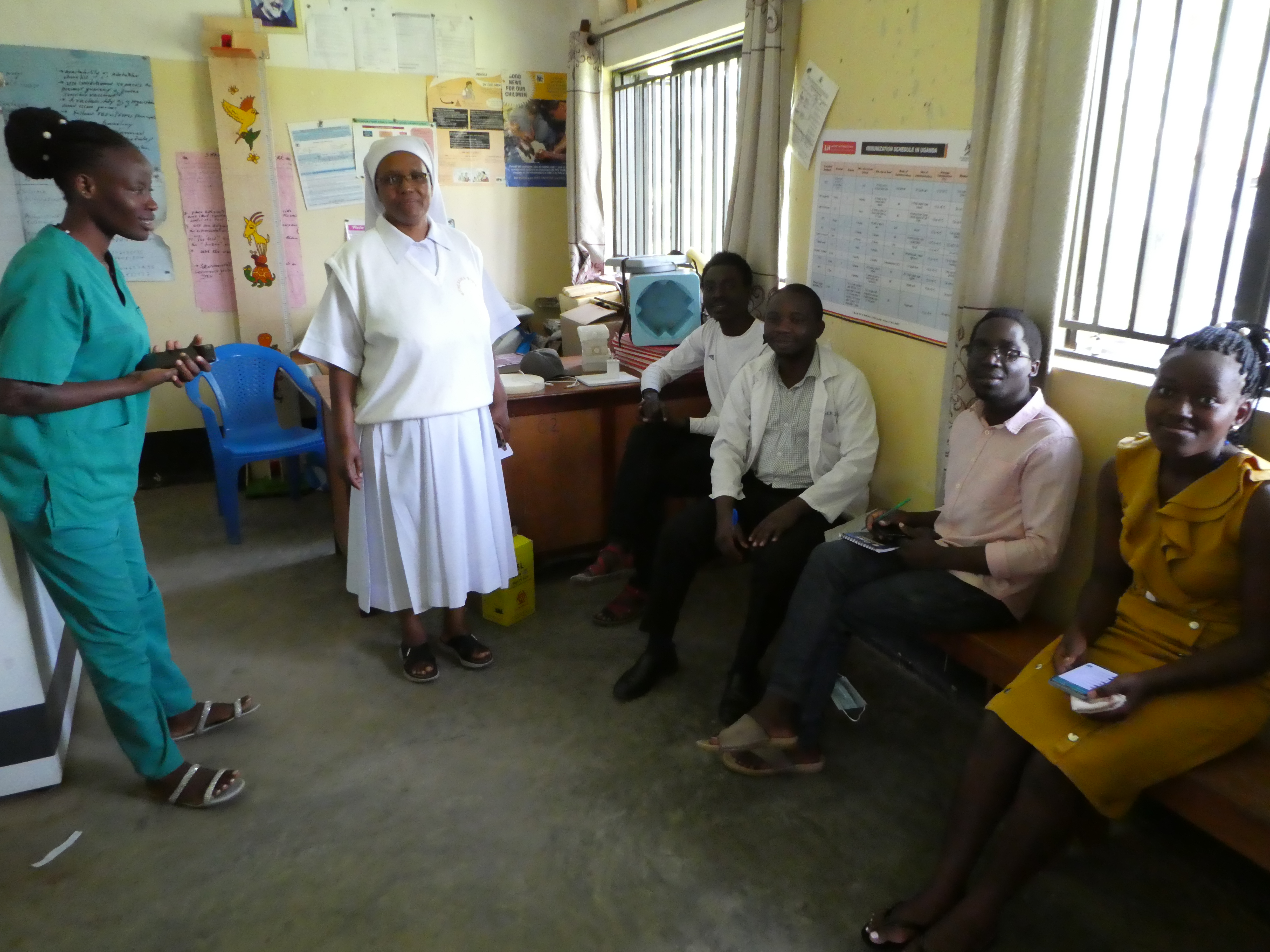 Hasta su consulta llegan las quejas de Runyankole Rukiga, un hombre de 56 años que todavía arrastra las consecuencias de la tuberculosis que padeció hace dos años. “Estábamos en el banco y se desmayó. Lo montamos en un coche y vinimos corriendo aquí”, explican sus dos hijos. El médico sigue hablando mientras se dirige a atenderle: “El 20% restante de pacientes son precisamente de tuberculosis, accidentes de tráfico o enfermos crónicos de VIH que vienen solo a por su medicina o a chequeos rutinarios”.