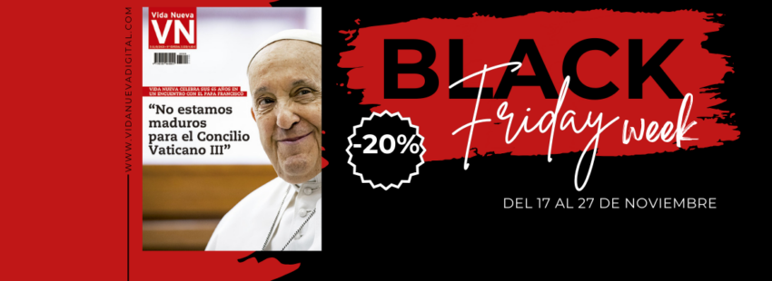 El Black Friday llega a Vida Nueva. Te invitamos a que te sumes a la familia VIDA NUEVA con un descuento del 20% del 17 al 27 de noviembre. ¿Cómo? Con una suscripción anual a nuestra revista. Cada semana podrás disfrutar en casa de nuestra publicación en papel para leerla con más detenimiento, ahondar en las reflexiones de las firmas más destacadas del ámbito eclesial, profundizar en los Pliegos… Además, podrás acceder al visor online compatible con todos los dispositivos.