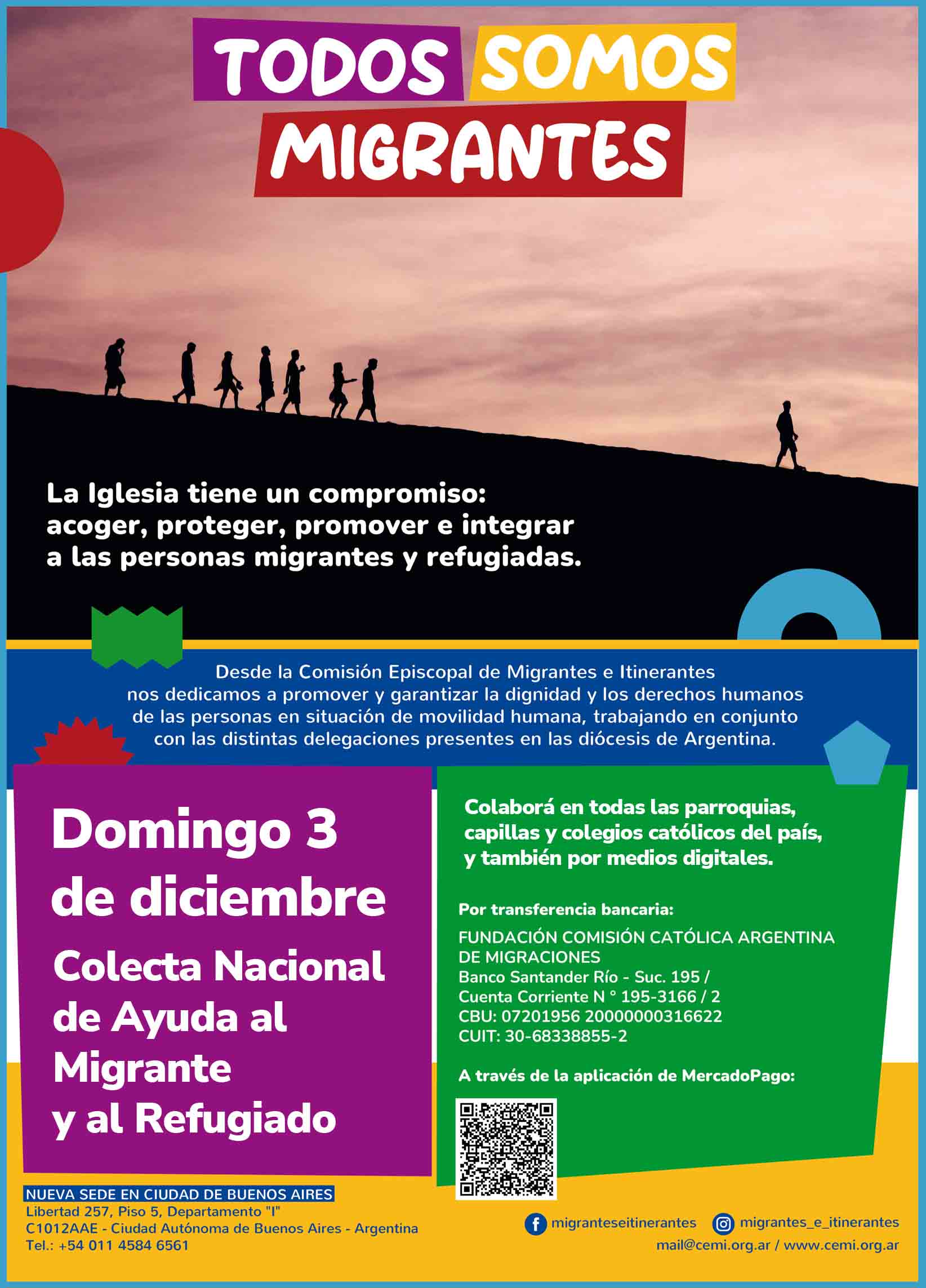 El próximo sábado 2 y domingo 3 de diciembre, en todas las parroquias y comunidades del país, está prevista esta Colecta cuyo recaudación es para cumplir con el objetivo de asistencia y promoción de la población migrante y refugiada.