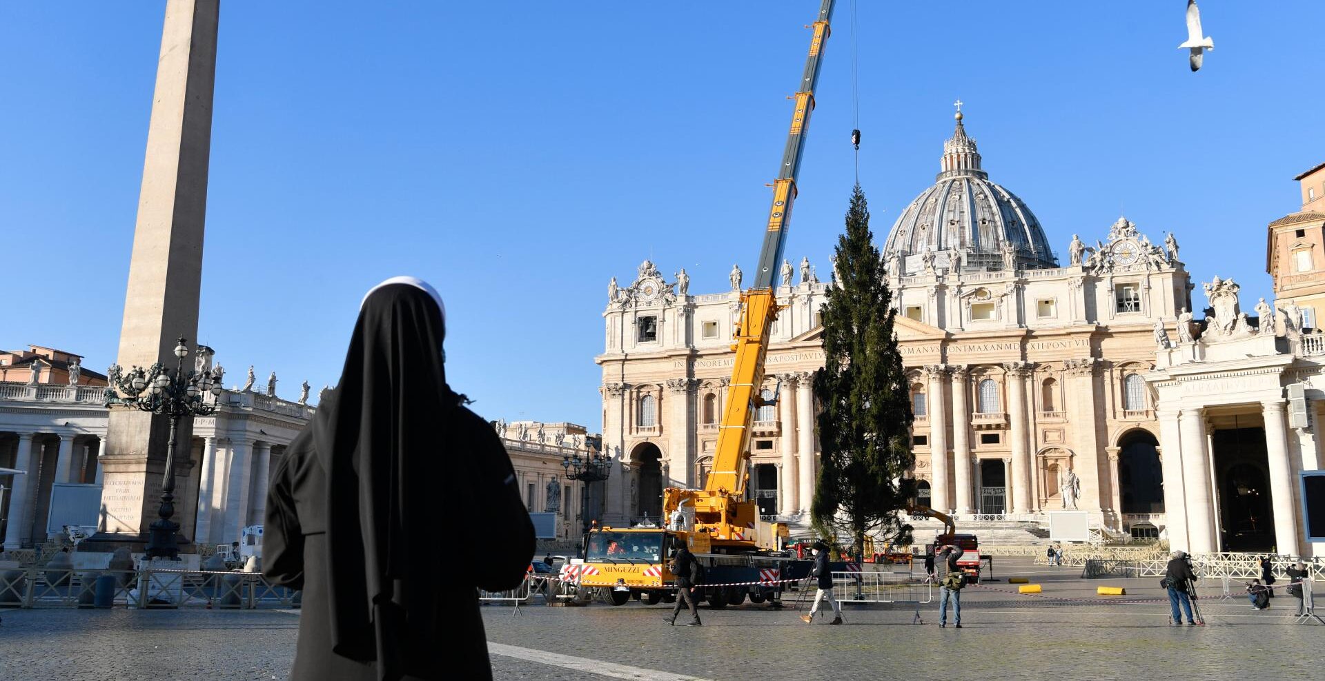 Como cada año por estas fechas, los trabajadores vaticanos han instalado el gigantesco árbol de Navidad que decorará la Plaza de San Pedro. Esta vez es un abeto de 28 metros de altura procedente del alto valle de Maira, de la zona de Macra, en la región italiana de Piamonte.