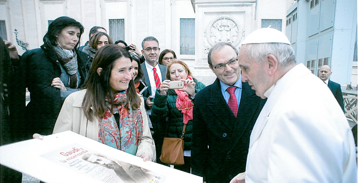 José Manuel Almuzara, presidente de la asociación pro-beatificación de Gaudí, saludando al Papa el 16 de diciembre de 2015
