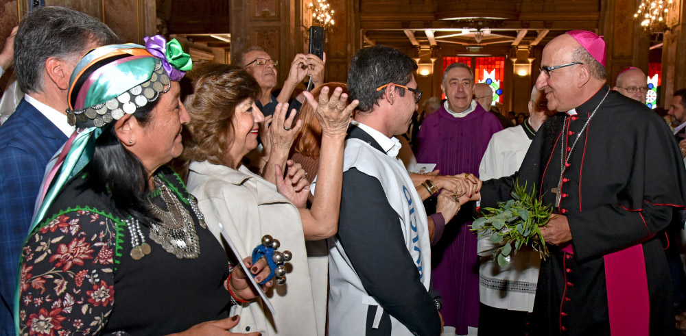 Señaló también que la Iglesia tiene la responsabilidad de orientar con sus valores la construcción de una sociedad justa, con paz fundada en la justicia y en el respeto a la dignidad de toda persona. “Promovemos una ética personal como fuente de cambio, la justicia social como motor de prosperidad y la paz social como resultado de una sociedad justa, donde nadie quede excluido. Promovemos el bien común no como la suma de bienes individuales, sino desde el convencimiento de compartir una humanidad común y de respetarnos mutuamente. Antes de ser católico o judío, antes de ser israelí o palestino, antes de ser ruso o ucraniano, somos seres humanos, y frente a un ser humano, debemos arrodillarnos, pues ahí está la impronta de Dios, creados a su imagen y semejanza”, declaró el nuevo arzobispo de Santiago.