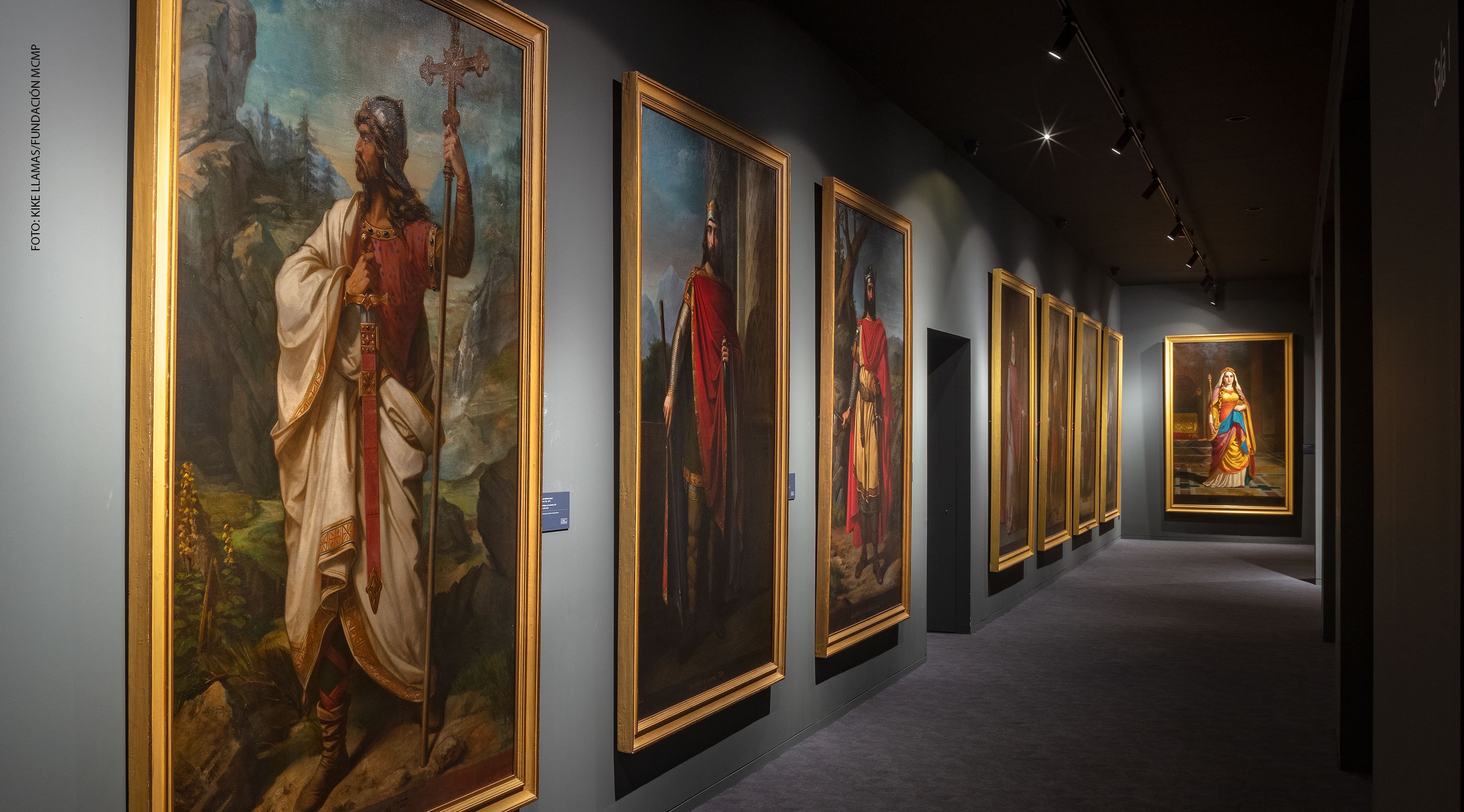 La muestra cuenta con un conjunto de 17 retratos de la Serie Cronológica de los Reyes de España, que, siendo propiedad del Museo del Prado, se encuentran en depósito en el Real Sitio de Covadonga desde 1884. La serie, pensada por José Madrazo, pretendía poner imagen a todos los monarcas que no habían sido retratados, y decide completarlos desde los visigodos como Ataulfo hasta Isabel II. Y fue Don Pelayo quien inaugura la galería pictórica de personajes a tamaño real con el marco dorado original.