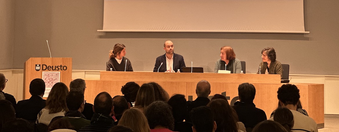 Previamente al acto de presentación del informe ha tenido lugar la inauguración de Mambré Etxea, un recurso de acogida para personas migrantes gestionado por la Fundación Ellacuría, fruto también de la dinámica colaborativa entre Deusto y SJM. En el acto han participado Marisabel Albizu, directora de la Fundación Ellacuria; Juanjo Etxebarria, rector de la Universidad de Deusto; Kontxi Claver, concejal del área de Igualdad, Convivencia, Cooperación e Inmigración del Ayuntamiento de Bilbao; y Jose Javier Pardo, delegado de la Plataforma Apostólica de Loiola de la Compañía de Jesús.