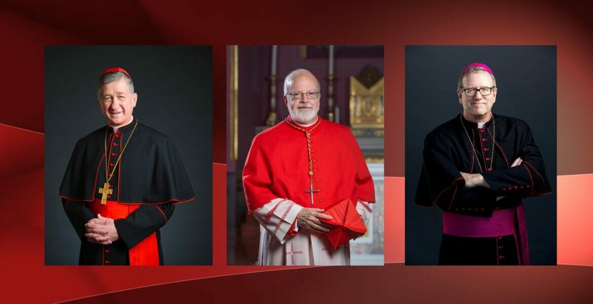 Los cardenales Cupich y O'Malley, junto al obispo Robert Barron