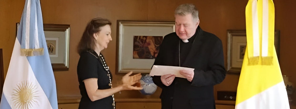 En la reunión, ambos funcionarios dialogaron sobre la relación entre la Santa Sede y el Estado argentino, y sobre “temas de interés del Cuerpo Diplomático acreditado en la República”.