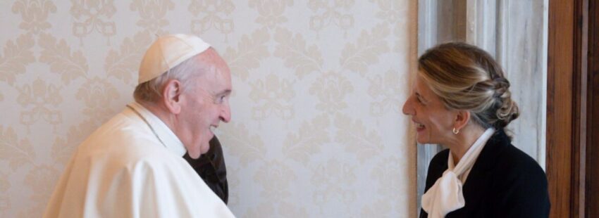La vicepresidenta segunda y ministra de Trabajo y Economía Social, Yolanda Díaz, ha destacado los “enormes vínculos” que, a su juicio, existen entre la economía social y el discurso del Papa Francisco, a quién, tal como recoge Europa Press, volverá a visitar “en apenas una semana”. Así lo ha indicado durante su intervención en la clausura el acto de presentación del Plan Integral de Impulso a la Economía Social 2024-2025, que ha tenido lugar en la sede del Ministerio.