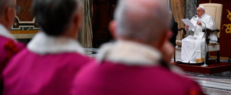 Y ha proseguido dirigiéndose a sus “queridos jueces”: “Sin oración no se puede ser juez. Si un juez no quiere o no puede orar, es mejor que se vaya y haga otro trabajo. Recordemos siempre esto: el discernimiento se hace ‘de rodillas’ -y un juez que no sabe ponerse de rodillas más vale que renuncie- implorando el don del Espíritu Santo: solo así podremos llegar a decisiones que van en dirección al bien de las personas y de toda la comunidad eclesial”.