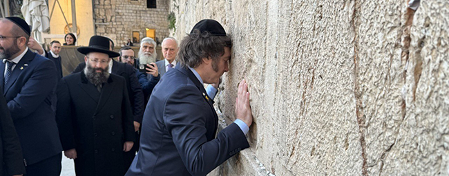 Allí, en Jerusalén, el presidente visitó el Muro de los Lamentos, donde fue recibido por el rabino Shmuel Rabinowitz; rezó ante los restos del milenario Templo de Jerusalén, y recorrió los túneles del Kotel, donde leyó La Torá.