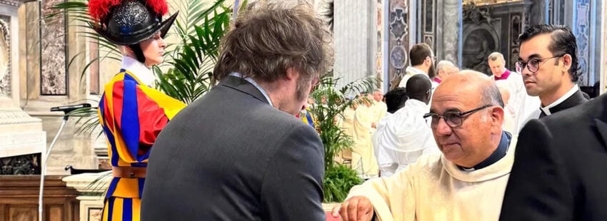 Si el primer día de su mandato como presidente de Argentina Javier Milei dejó clara su cercanía con el judaísmo –ratificada hace unos días durante su visita a Israel–, un gesto ha desconcertado del mandatario durante la misa de canonización de María Antonia de San José, ‘Mama Antula’. Y es que Javier Milei y su hermana Karina recibieron la comunión llegado el momento.