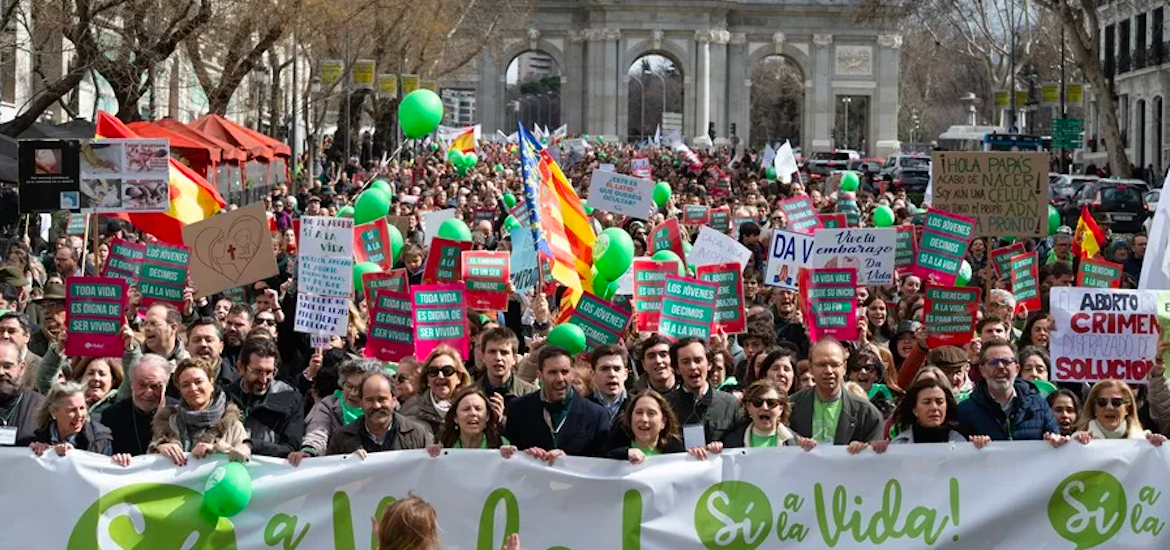 Rocío Monasterio ha manifestado su presencia en la marcha para “defender la vida desde la concepción hasta la muerte natural”, y ha añadido que Vox quiere derogar “esa ley que trajo Zapatero que lo que hace es decir que la mujer tiene derecho a acabar con la vida de su hijo”. El aborto, ha dicho Monasterio, no tiene que ser “un derecho blindado en la Constitución, como ha pasado en Francia”.
