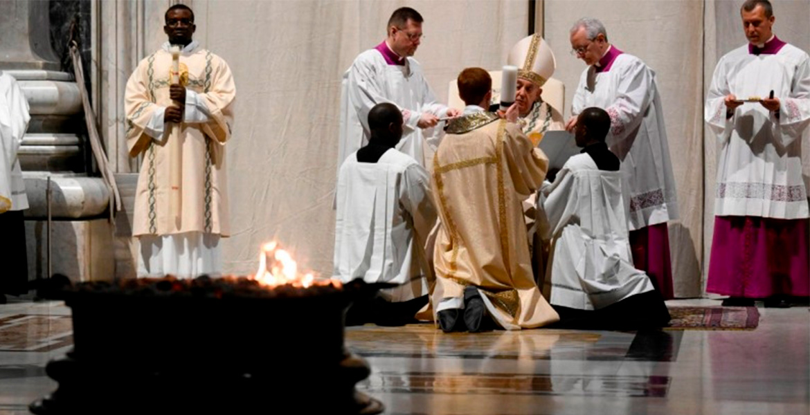 El Papa preside la principal celebración del año litúrgico y administra los sacramentos de la iniciación cristiana a ocho catecúmenos