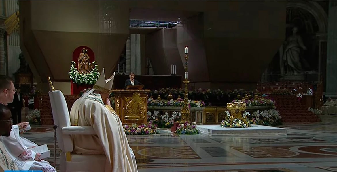 Después se proclamaron algunas lecturas bíblicas –con alguna solista que no es del coro de la Capilla Sixtina incluida–, en las que se ha evidenciado el desarrollo de la historia de la salvación en torno al momento central de la Resurrección, narrado en el evangelio de Marcos aclamado en el Gloria, a través de sonido de todas las campanas de la basílica, y pregonado con el Aleluya solemne.