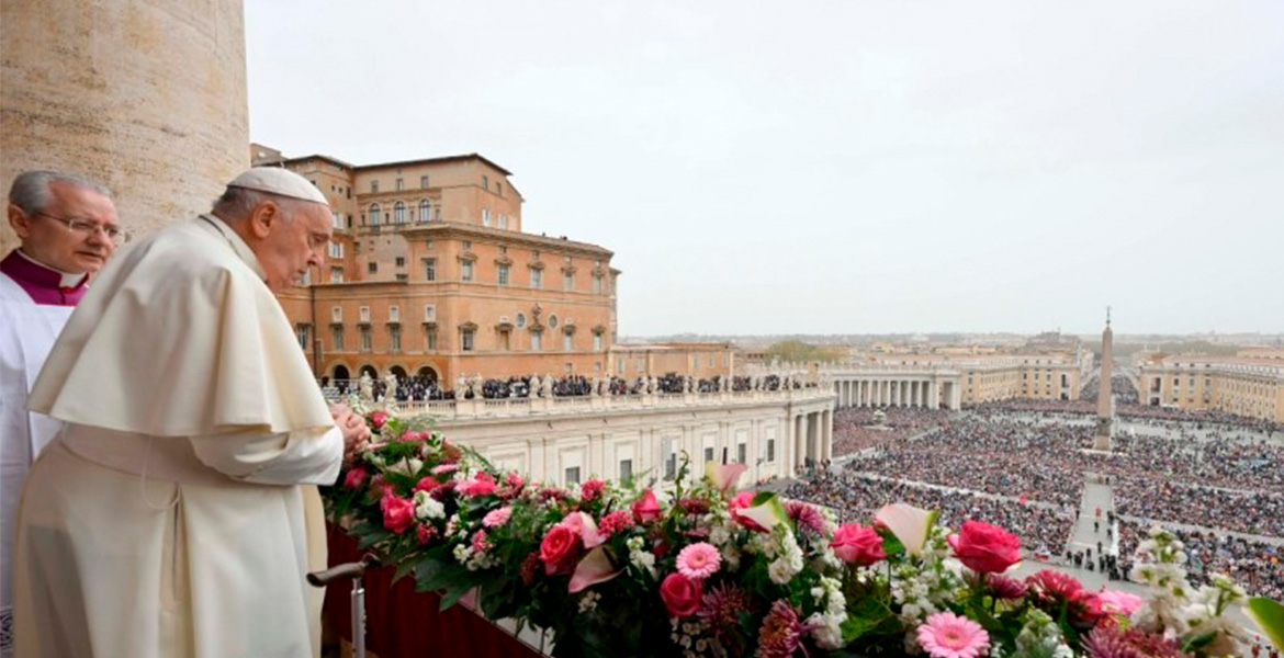 Desde el balcón central de la Basílica Vaticana el papa Francisco ha dirigido su mensaje de Pascua y dado la bendición ‘Urbi et orbi’ a todos los fieles reunidos en la Plaza de San Pedro y conectados por todo el mundo. Un solemne acto en el que el pontífice ha estado acompañado por los cardenales diáconos James Michael Harvey y Lorenzo Baldisseri. En sintonía con la homilía de la Vigilia Pascual, Francisco recordó que “la tumba de Jesús había sido cerrada con una gran piedra; y así también hoy hay rocas pesadas, demasiado pesadas, que cierran las esperanzas de la humanidad: la roca de la guerra, la roca de las crisis humanitarias, la roca de las violaciones de los derechos humanos, la roca del tráfico de personas, y otras más”.