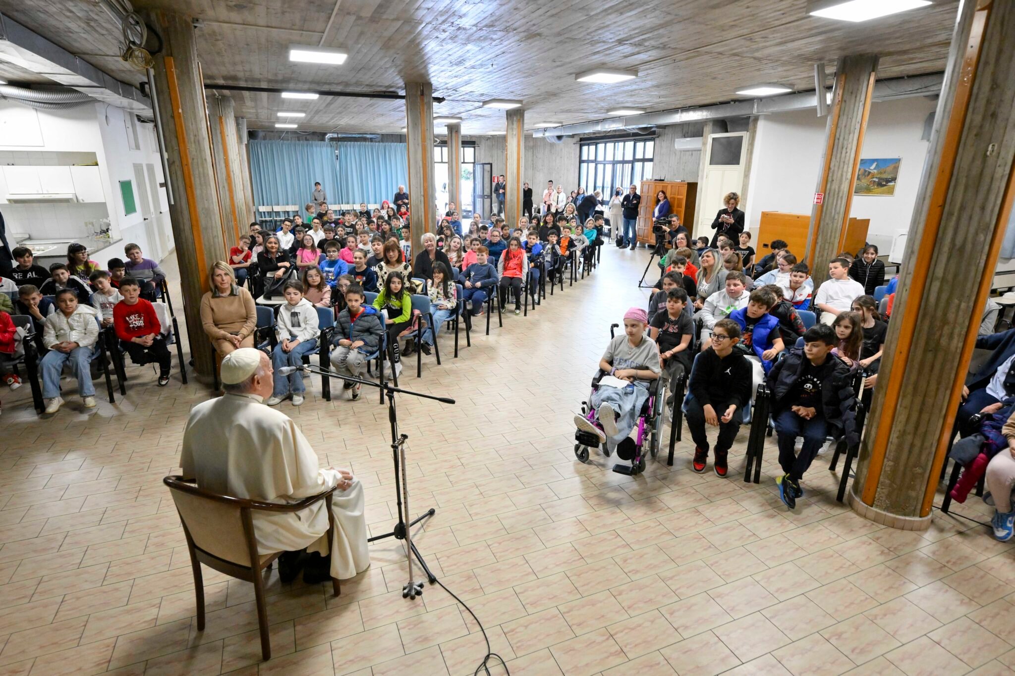 Los niños, que forman parte de grupos de catequesis de Comunión, han acogido con sorpresa y alegría al Papa, que llegó inesperadamente a la parroquia. Tal como ha relatado la Santa Sede en un comunicado, su reacción fue de asombro cuando, junto a los catequistas, vieron al Papa Francisco entrar al salón parroquial.