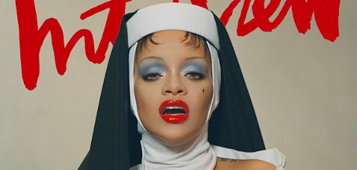 La cantante Rihanna (36) se ha vuelto a enfundar un atuendo propiamente religioso. Esta vez, al posar para la portada de la revista Interview con el tocado de una religiosa y una camisa blanca abierta. Asimismo, la revista presenta la entrevista con la cantante con el titular “Rihanna está lista para confesarse”.