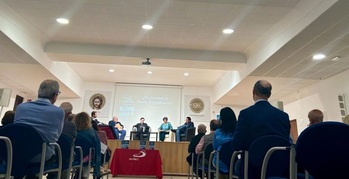 “¿Ha fracasado la Nueva Evangelización?”. Es la pregunta que, en forma de libro, lanza el delegado de Catequesis de la Archidiócesis de Madrid, Manuel María Bru. Publicado por San Pablo, el sacerdote presentó esta tarde la obra en el salón de actos de la parroquia San Juan de la Cruz, donde estuvo acompañado por el cardenal José Cobo Cano, arzobispo de Madrid, autor del prólogo del libro; Dolores García Pi, presidenta nacional del Foro de Laicos; el salesiano Santiago García Mourelo, profesor de la Universidad Pontificia Comillas; y Miguel Carmen Hernández, superior provincial de los paulinos y director general del Grupo San Pablo en España.