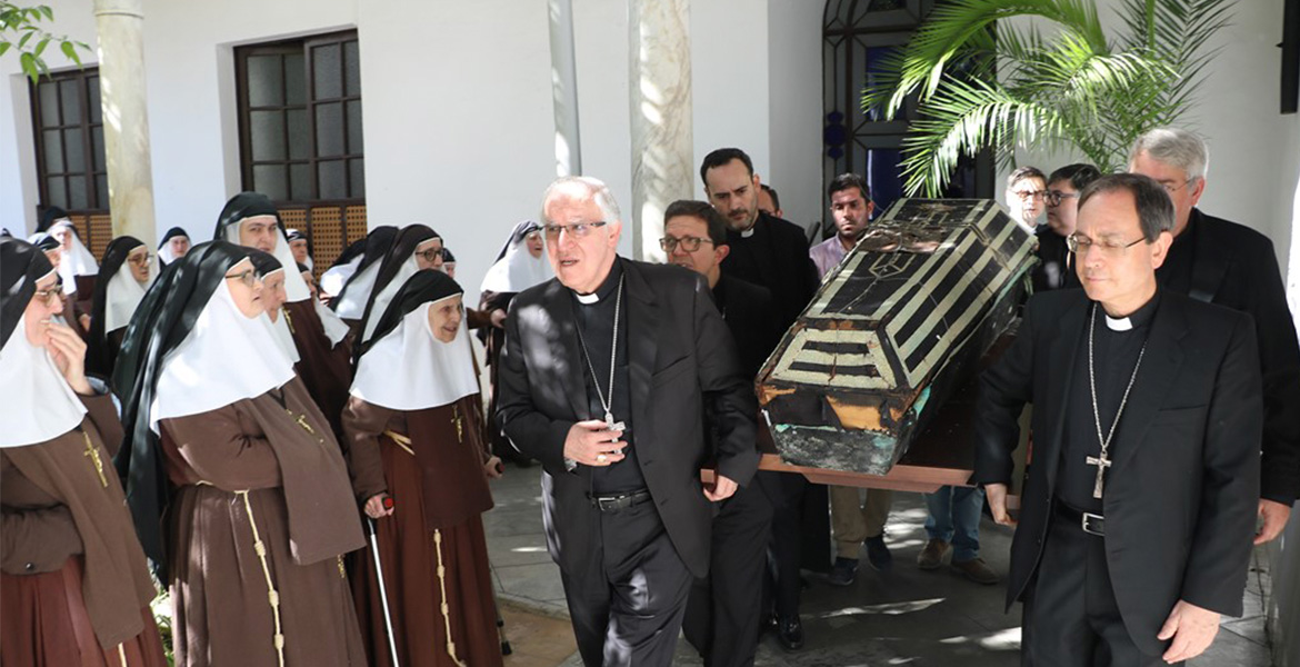 Como ha informado la achidiócesis en un comunicado, la capilla de los Dolores del convento ha acogido el inicio del acto, con el juramento de los oficios que han intervenido en las diferentes operaciones. Entre ellos, han estado el delegado episcopal, José Ángel Martín; el promotor de Justicia, Antonio Vergara; el notario actuario, Isacio Siguero; y la notaria adjunta, María del Monte Chacón; así como los peritos forenses y operarios. Asistió igualmente el postulador de la causa, Salvador Aguilera –ya que esto forma parte del propio proceso de beatificación y canonización–; el deán del Cabildo Catedral, Francisco José Ortiz; el vicecanciller, Pedro Reina, y el capellán de la comunidad, Borja Núñez.