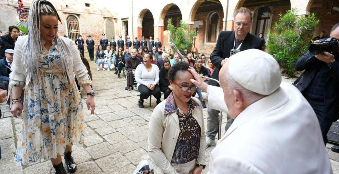 Saludó una a una a las ochenta presas que le esperaban el patio de la cárcel. Una a una. Secando lágrimas. Regalando sonrisas y bendiciones. Así arrancó el viaje exprés de Francisco a Venecia para convertirse en el primer Papa de la historia en participar en la Bienal de Arte de la ciudad. Y lo materializó en la prisión de Giudecca, el lugar elegido por la Santa Sede para levantar un pabellón en la cumbre de creadores más popular del planeta. De hecho, son las propias internas quienes han trabajado mano a mano con diversos artistas para dar forma al proyecto.
