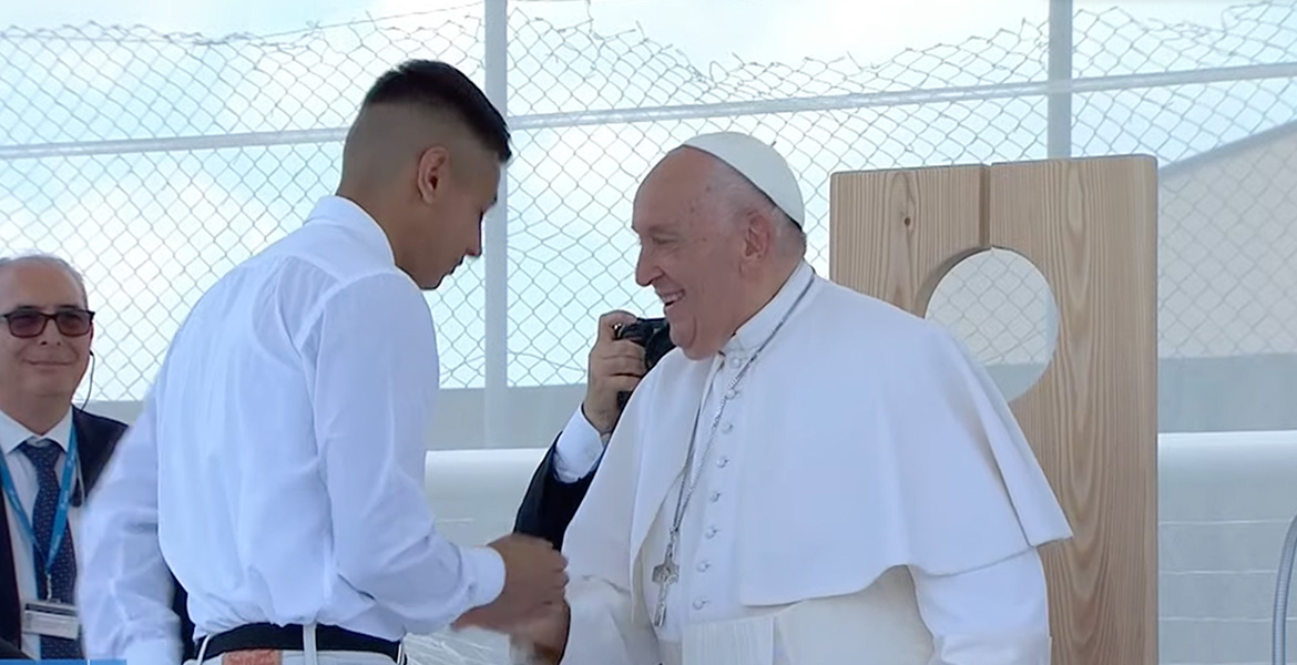 Francisco comparte la comida con los reclusos de la prisión local durante su visita a la ciudad del norte de Italia