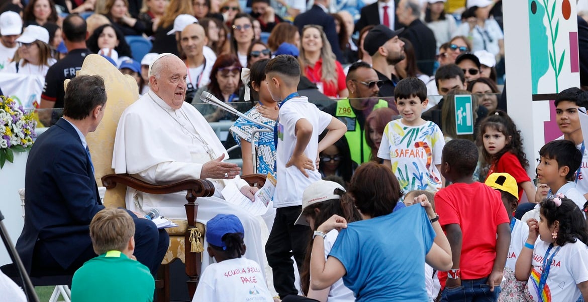 A la pregunta de Alí, de Pakistán, preocupado por si “de verdad todos somos hermanos”, Francisco respondió con un “es verdad, es una pregunta muy profunda”. “Y si somos hermanos y hermanas, ¿somos amigos? ¿Somos enemigos?”, volvió a provocar a los menores para buscar de nuevo su complicidad.