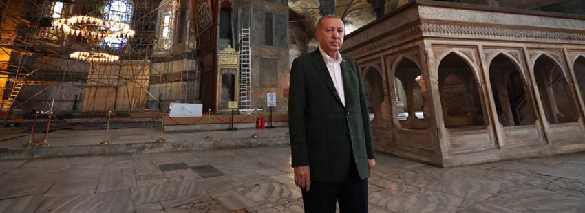 En esos cinco siglos, la que fuera iglesia más grande de todo el mundo (datada del siglo VI, fue durante un milenio el templo cristiano de referencia en todo Oriente), fue una mezquita. Algo que se mantuvo hasta la caída del Imperio Otomano y la implantación de la República Turca, cuando, bajo la presidencia de Kemal Atatürk (1923-1938), quien sentó las bases del triunfo de la Revolución de los Jóvenes Turcos en 1908, se apostó por un modelo político “democrático, moderno y laico”. Fruto de ese proceso de “desislamización”, el gran hito simbólico consistió en la conversión de Santa Sofía en un museo, lo que fructificó en 1934.