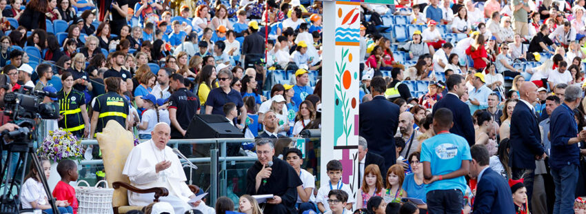 Cinco meses más tarde, ese anuncio ha demostrado la capacidad de convocatoria del Papa, porque estos días hemos visto y oído llegar a Roma más de cien mil niños y niñas, chicos y chicas de más de un centenar de países de los cinco continentes. Algunos de ellos, de Afganistán o Zambia, estaban presentes con delegaciones muy minoritarias; de otros lugares como Ucrania, Rusia, Israel o Palestina, pese a estar en guerra, no faltaron tampoco representantes. Dominaban, como es lógico, los italianos. España envió un digno centenar –la mayoría procedentes de Madrid– que desfilaron con nuestra bandera y tocados con sombreros andaluces.