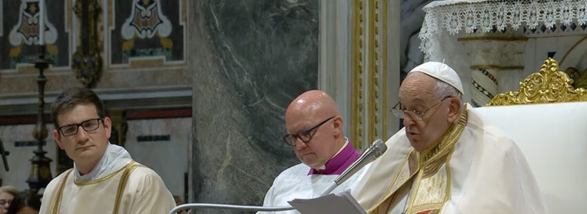 En la celebración y la posterior procesión has participado los obispos, párrocos y seminaristas de la diócesis de Roma. Además, unos 300 fieles han representado a las asociaciones vinculadas a la adoración nocturna y las órdenes del Santo Sepulcro y los Caballeros de Malta. Unas mil religiosas de congregaciones con carisma eucarístico han encontrado también acomodo a lo largo de la nave de la basílica. también el coro de la diócesis de Roma ha participado junto a la Capilla Sixtina. Para procesión, como siempre ha hecho, Francisco esperó la llegada del Santísimo frente a Santa María la Mayor donde se cantó el ‘Tantum ergo’ y el Papa dio la bendición.