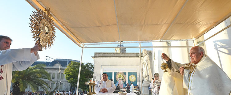 En el marco de la celebración de Corpus Christi, el titular de la arquidiócesis de Paraná, Juan Alberto Puíggari, resaltó el don de la Eucaristía y el mandato de repetir sus gestos y palabras de la última Cena: “Esto es mi cuerpo, que se entrega por ustedes. Hagan esto en memoria mía” (1 Cor 11, 24).