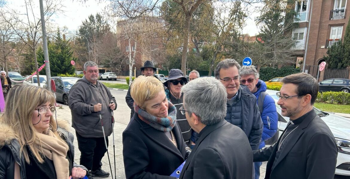 El presidente y vicepresidente de la Conferencia Episcopal, Luis Argüello y José Cobo, saludan a las víctimas de abuso