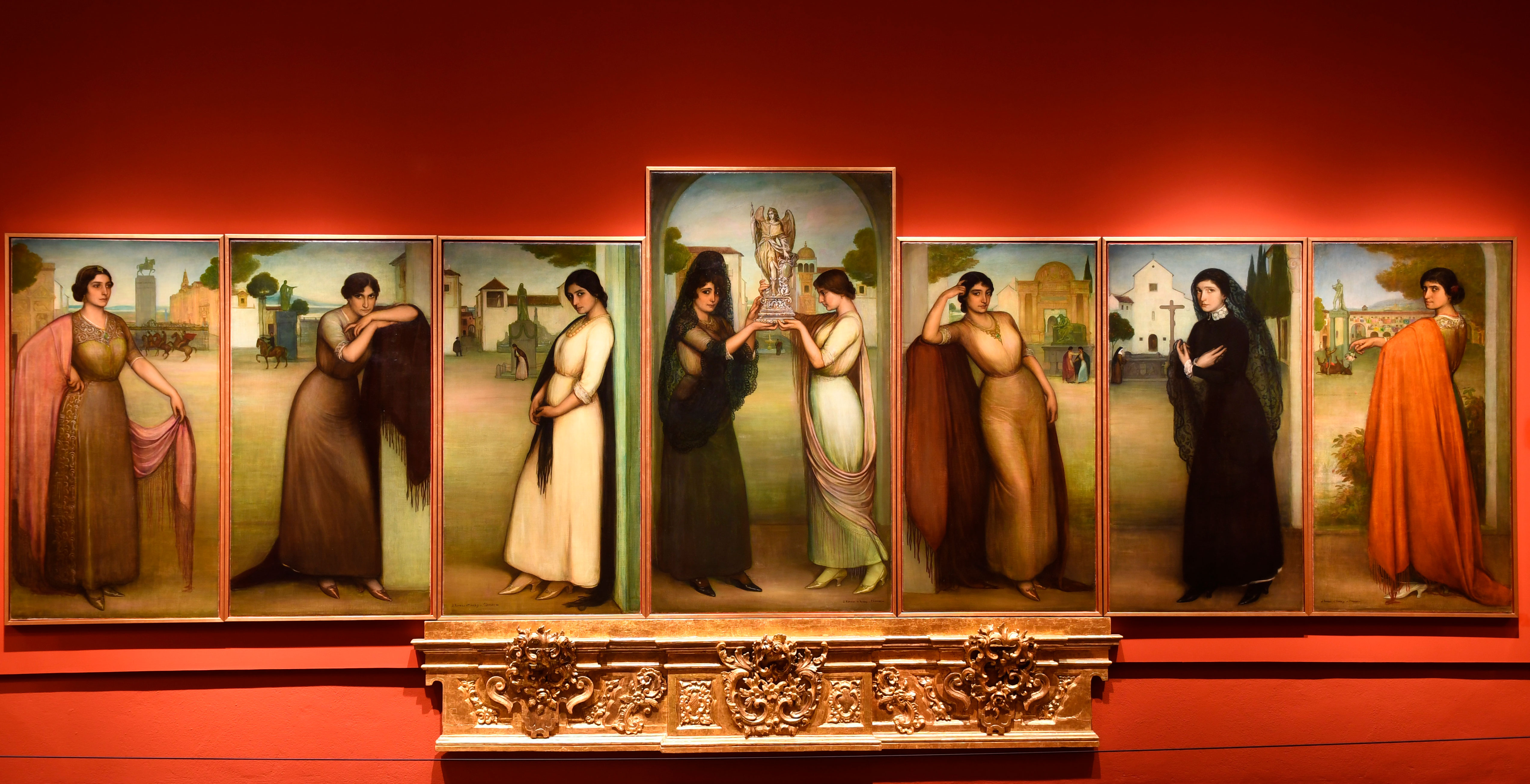 Toda la obra religiosa de Romero de Torres fue un ‘Retablo del amor’, como tituló su famoso lienzo, presentado con escándalo en la Exposición Nacional de 1910. Un retablo compuesto de tres calles sobre predela y seis paneles con marco neogótico. “El cuadro causó escándalo por su ambigüedad y lo erótico del tema. Puede decirse que es una exaltación del amor en su doble esencia, sagrado y profano, divino y humano”, describe Valverde, durante décadas al frente del Museo Romero de Torres en Córdoba.