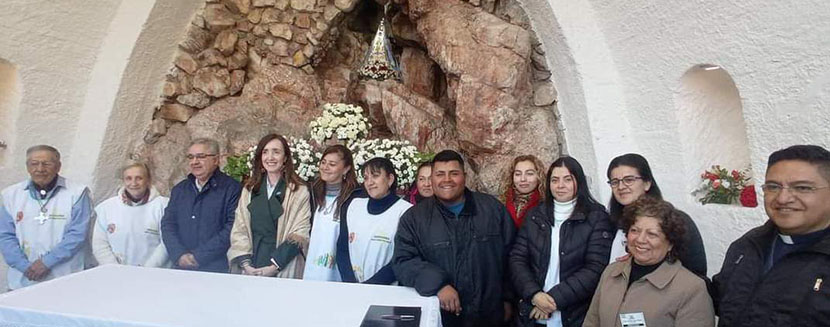 En el marco de estas fiestas marianas, invitada por el mismo gobernador, participó y rezó de la Oración por la Patria, junto a los fieles y servidores del Santuario. Luego, firmó el libro de visitas. Asimismo, en el recorrido, conoció las últimas renovaciones del predio, y el sector del subsuelo, donde se encuentra el corazón de la Gruta de Choya, la Capilla de Adoración.