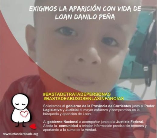 Específicamente, sobre el caso Loan replicaron otras consultas: cómo puede un niño de 5 años estar desaparecido desde hace 40 días, sin tener pistas ni huellas ni señal que lleve a la justicia y familiares a su encuentro. “¿Cuál es la connivencia existente entre la red delincuencial mafiosa y el poder político o policial?”, objetaron.