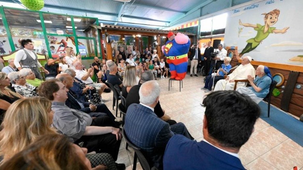 “Les agradezco a todos por lo que hacen para hacer sonreír a la gente”, dijo el Papa al tomar la palabra. Saludó a algunos niños que ya lo habían conocido, muy pequeños, en 2018, cuando celebró el Corpus Domini en Santa Mónica, también en Ostia.