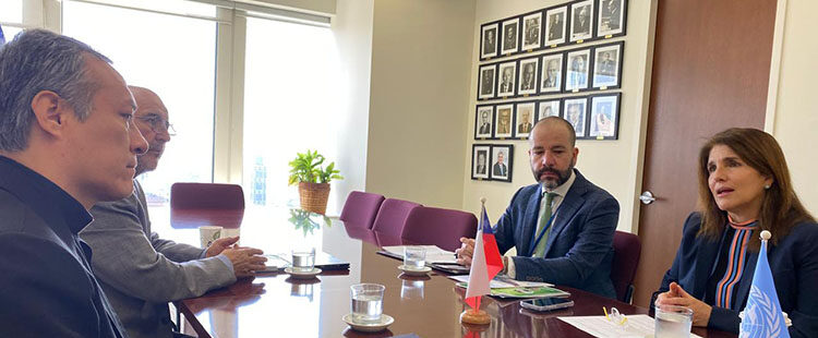 Una reunión inédita sostuvo el secretario general del CELAM, Lizardo Estrada Herrera, obispo auxiliar de Cusco (Perú) con Paula Narváez Ojeda, presidenta del Consejo Económico Social de Naciones Unidas, en Nueva York. El obispo asistió acompañado de Guillermo Sandoval, director del Centro de Gestión del Conocimiento, del organismo latinoamericano.