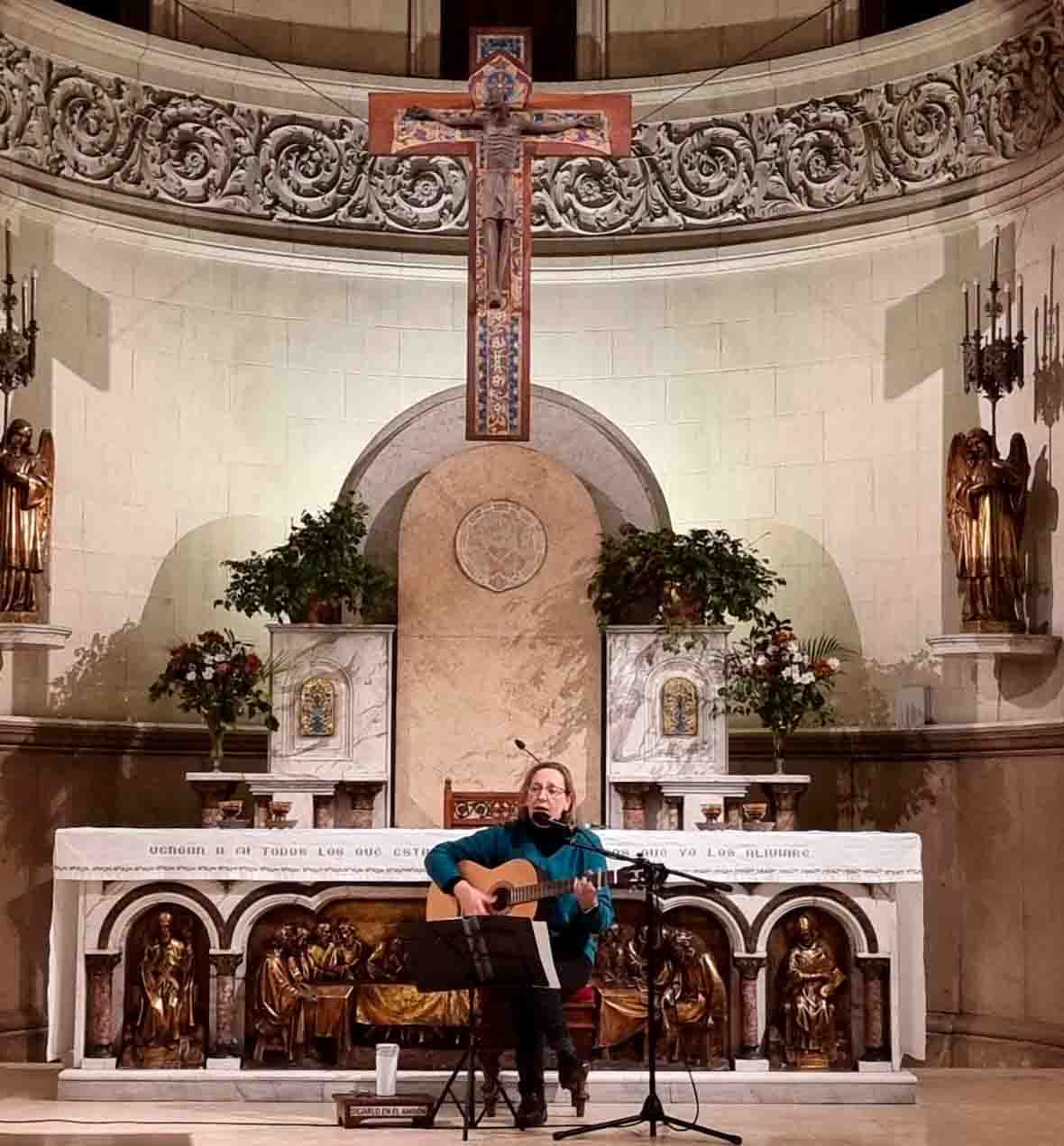 Durante una hora, la tradicional Iglesia de Las Esclavas, se entonaron canciones, acompañando a la autora, con la presencia de jóvenes de la Congregación que se acercaron, a pesar de la distancia para compartir este momento de recogimiento, música y oración.