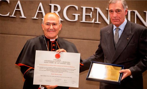 Después de la bendición del diploma y placa, realizada por el el vicerrector Boquin, y de la lectura de la resolución a cargo del vicerrector Limodio, leyó la resolución del Consejo Superior de la UCA, finalmente el rector entregó la distinción. Por su lado, el P. Galli resaltó las tareas pastorales y académicas del prefecto de quien puntualizó que es un hombre que ama los libros, las librerías y las bibliotecas. Mencionó que el cardenal recuerda que las lágrimas son una forma de rezar, y al mismo tiempo nos regala su sonrisa. “Tu servicio, José, nos llena de esperanza”, le indicó.