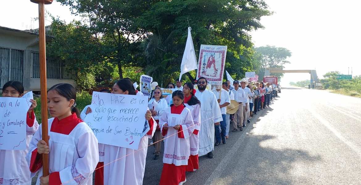 En ese contexto, en el marco de la fiesta patronal de San Bartolomé Apóstol, católicos de la parroquia del mismo nombre perteneciente a la Diócesis de San Cristóbal de las Casas salieron a las calles en peregrinación por la paz.