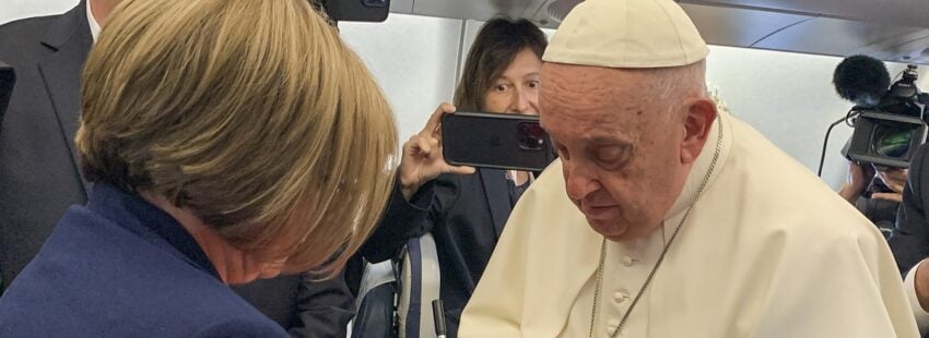 Tanto la firma de la camiseta como la entrega de la linterna tuvieron lugar en el habitual saludo de Francisco a los ochenta periodistas que le acompañan en esta peregrinación apostólica que le llevará por Indonesia, Papúa Nueva Guinea, Timor Oriental y Singapur. “Os agradezco el venir a este viaje. Os agradezco la compañía en este viaje tan largo, que creo que es el más largo que he hecho”, comentó el pontífice a los comunicadores.